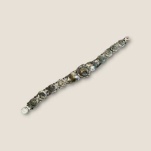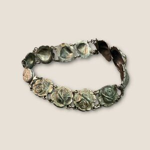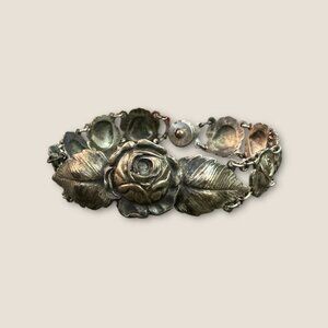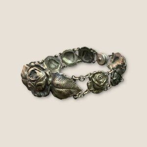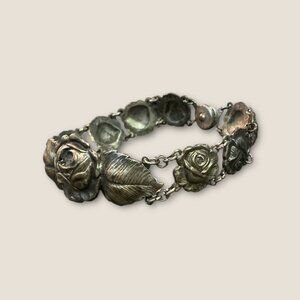 Antique Vintage Rose Relief Bracelet Silver Tone 8" Closure Elegant Floral Desig