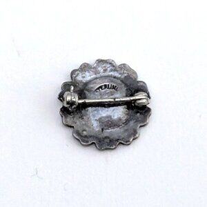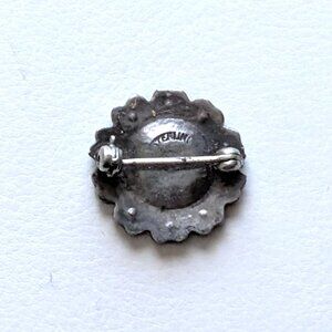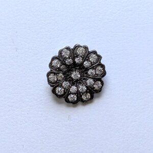 Antique Vintage Sterling Silver Clear White Paste Stones Flower Shape Pin Brooch