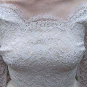 Delicate vintage lace and sweetheart bodice and shirt make for an exquisite look. Don't miss looking at the incredible lace arms.