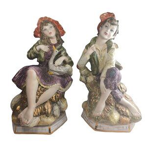 Antique Italian Girl Boy Victorian Peasant Children Capodimonte BENACCHIO Set of 2