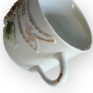 Antique Vintage Made in Germany Porcelain Metallic Gold Floral Embossed "Love the Giver" Mug, Cup