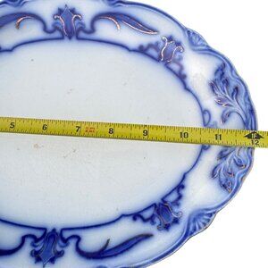 Antique W H GRINDLEY Flow Blue Porcelain Oval Serving Platter England Lotus 12"