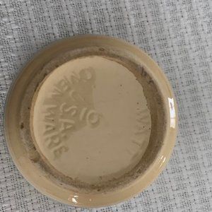 Description: Looking for a unique one of a kind vintage pottery? This bowl is for you! It is pale yellow in color with a blue and pink stripe. It is marked with Watt #6, ovenware, USA on the bottom. Great to use as a small mixing bowl, think egg cracking or to maybe put some plants in! The perfect vintage piece to add to your collection.