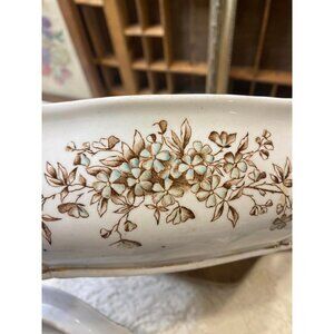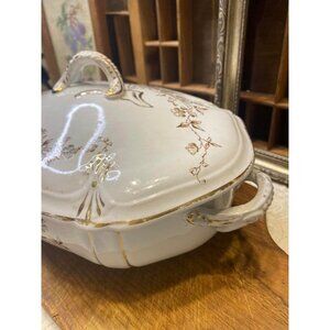 Antique White Porcelain Ironstone Meakin WM Co Tureen With Lid Floral Gold & Gre