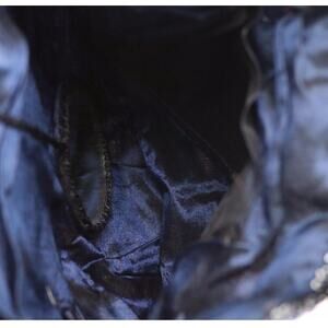 Good antique condition with visible signs of age and wear. Bead loss and broken threads in areas, minor textile deterioration, plating loss and oxidation to mesh. Lining intact but aged. Retains interior pocket mirror and original drawstring cords.