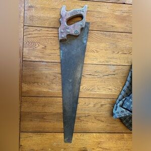 Antique Wood Handle Saw Vintage Rusty Collectible Wheat Design On Handle
