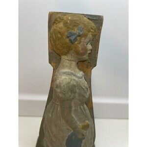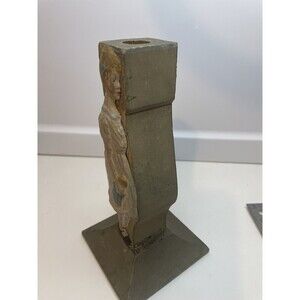 Antique Wooden Candlestick Holder Girl Carrying A Toy Cracks