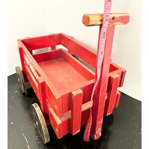 Antique Wooden Wagon Childrens Pull Toy, RED WAGON About 14"x11" Baby Decor