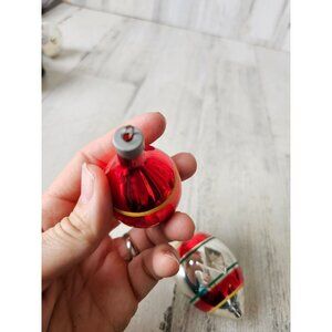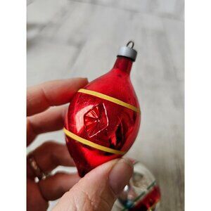 Antique diamond indent teardrop red striped green mercury glass ornament Xmas set tree