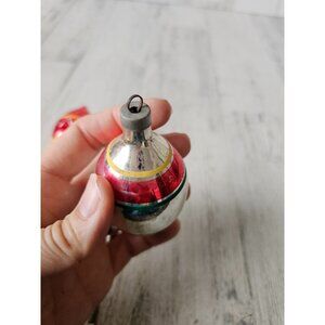 Antique diamond indent teardrop red striped green mercury glass ornament Xmas se