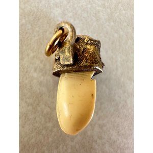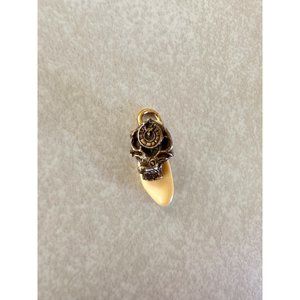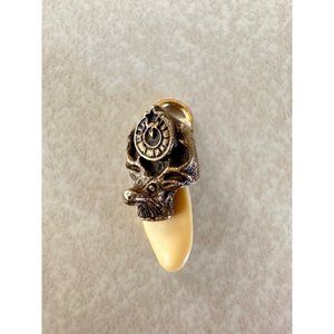 Antique gold filled Elk Lodge 11th hour chime real tooth pendant charm fob