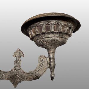 This type of sconce, often called a “swing lamp,” was designed to hold an oil lamp or burner and often features ornate cast iron designs. It typically includes a wall bracket for mounting and allows the sconce arm to swing side to side.