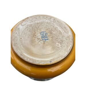 Antique large biscuit jar English scenery. Made of porcelain with metal lid. Small nick on bottom side. Item is about 6” x 6”