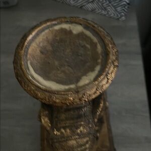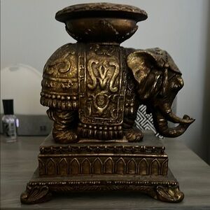 Add a touch of elegance to your home with this antique gold elephant candle holder. Perfect for creating a warm, inviting atmosphere.