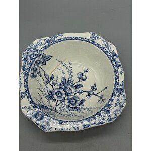 Antique midway decor Alfred Meakin England Blue & White Floral Soup Bowl READ