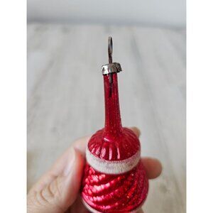 Antique red glass ornament flocked Xmas tree about 3.5 in tall 1.5 in diameter