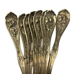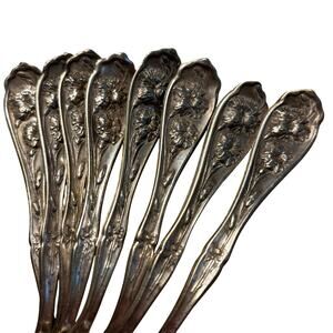 Antique silver teaspoons set (8) Carnation Pattern 1908 Rogers Art Nouveau