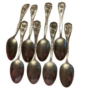 Antique silver plated teaspoons - a matching set of 8 - these are in the pattern named "Carnation" produced circa 1908 by William Rogers Silver Company in a lovely Art Nouveau style floral design. These all show light tarnish and moderate to heavy wear including heel wear and surface scratches but still in usable condition...and so pretty!