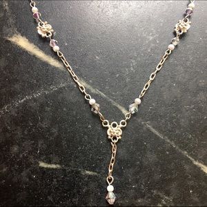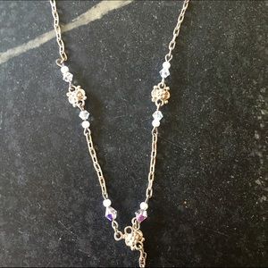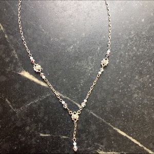 Beautiful silver antique style necklace with an 8" chain and a 1 " drop. Simple but just what your outfit needs to give it that little something.