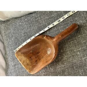 This antique shovel belonged to my grandmother. It is hand carved and finished, solid wood. Measures 12" long x 5" wide across shovel head. It is in excellent condition, with some signs of use on the end of the shovel. I think she told me it was a flour bin shovel and she always kept it hanging on the wall in her kitchen. Perfect Farmhouse décor.