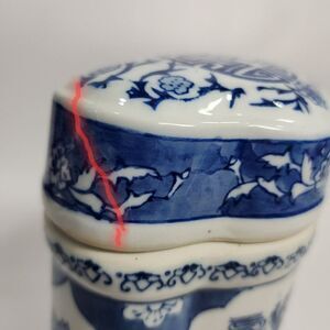 Antique 8" Tea Lidded Blue White Canister 1915 - 20 Hand Painted Porcelain.