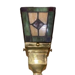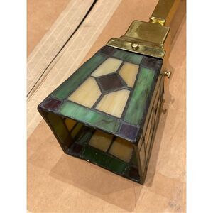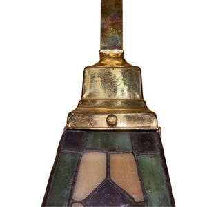 Antique Arts and Crafts Pendant Light Stained Glass abd Brass