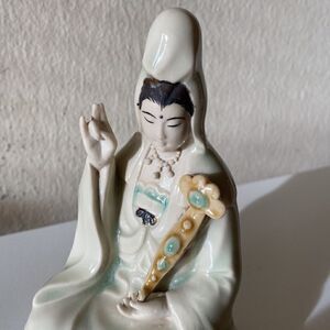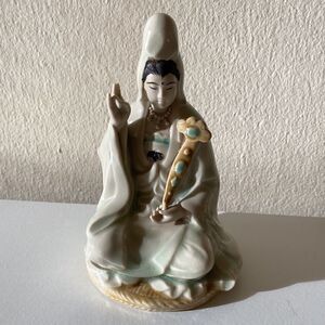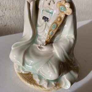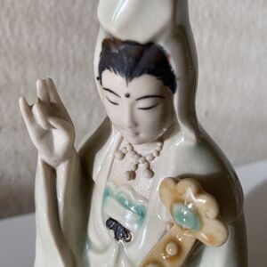 Antique Chinese Guan Yin Statue Green Glazed 5.5”