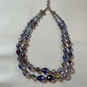 🪁 Antique Czech Bi-color Faceted Glass double strand Necklace