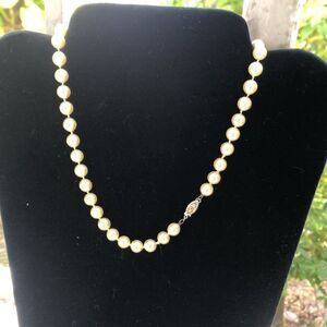 Is it true that are in good condition.Knotted between each Pearl with a filigree lock, 9” long