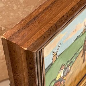 Antique Framed Don Quixote Sancho 8” Enameled Clay 8” Square Tiles Custom Framed