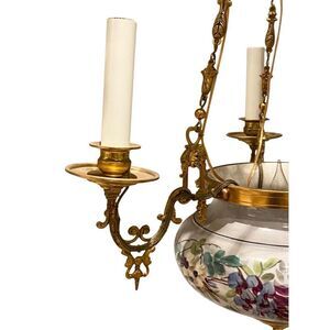 Antique Louis XVI-style Neoclassical Hand Painted Cwramic Light Fixture Hanging Lamp Chandelier