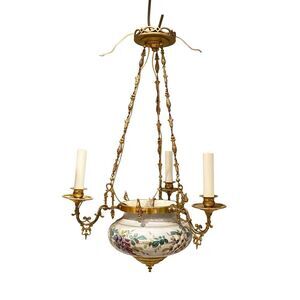 Antique Louis XVI-style Neoclassical Hand Painted Ceramic Light Fixture Hanging