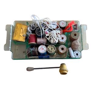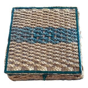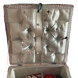 Square sewing basket with pin cushion under the top.  Everything that was in the basket is here.  It’s in remarkable condition for 100+ years. Questions?  Message me! See 2 other baskets in this closet.