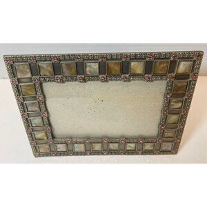 Antique-Style Gold Metal & Mother of Pearl Picture Frame with Pink Gem Accents 6