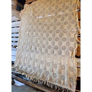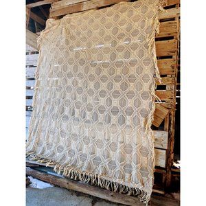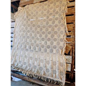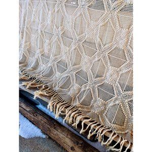 Antique/Vintage Cotton crochet Thread Bedspread with Fringe 108x82"