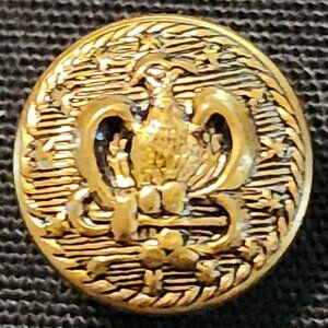 Explore the charm of yesteryear with this lot of 3 metal/brass military uniform buttons, each boasting a round shape and a resplendent gold hue. These antique originals, with their intricate pattern style, are a testament to the craftsmanship of a bygone era. Ideal for collectors. Although the country of origin remains a mystery, the quality and detail of these buttons speak to their antique value. Enhance your collection or infuse a classic aesthetic into your designs with these exquisite metal buttons.