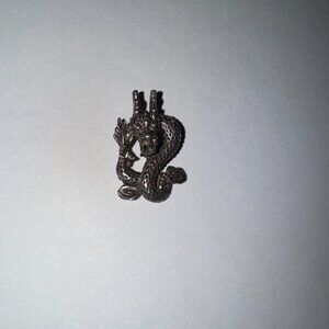 This is a Antiqued Asian design Dragon. This dragon has been treated with Liver of sulfur to antique the Silver and give it a patina which makes the design on the Dragon stand out differently compared to the other one we have made.