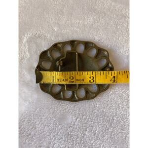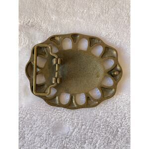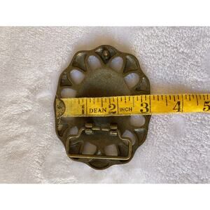 This vintage-style belt buckle features an antiqued bronze tone metal design, perfect for adding a touch of rustic charm to any outfit. Its unique finish gives it a timeless appeal, making it a versatile accessory for both casual and dressed-up looks. The buckle is versatile and easy to attach and detach, ensuring a secure and stylish fit. Ideal for collectors or anyone looking to elevate their wardrobe with a distinctive piece. In excellent used condition. EUC