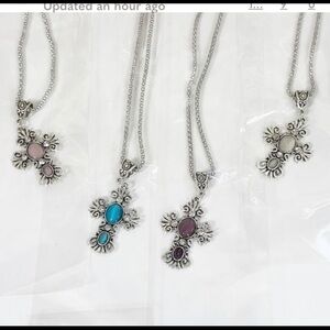 Beautifully detailed Blue stone and cubic zirconia antiqued silver cross