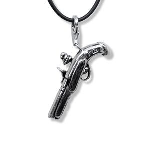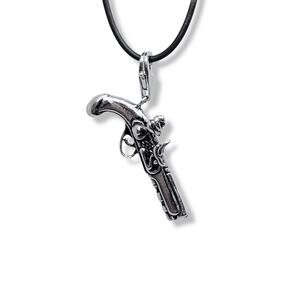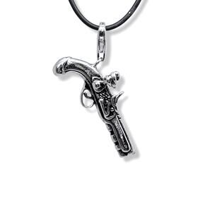 Antiqued Rhodium Plated 925 Sterling Silver Old Timey Pirate Gun Charm nicely detailed, Approx size 1 1/4"L x 1/2"W x 1/4"H with Spring Ring Bail