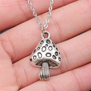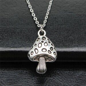 Antiqued Silver Spotted Mushroom Psychedelic Shroom Pendant Chain Necklace