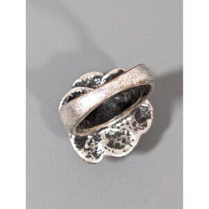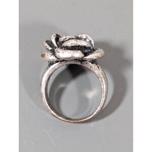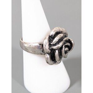 Antiqued Silver Tone Rose Flower Ring Size 7