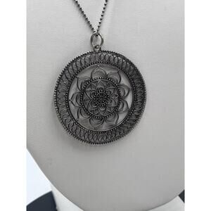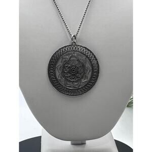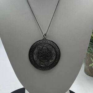 Antiqued Sterling Silver 925 Lotus Mandala Circle of Life Pendant Necklace
