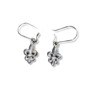 Antiqued Silver-Tone Fleur de Lis drop dangle pierced Earrings