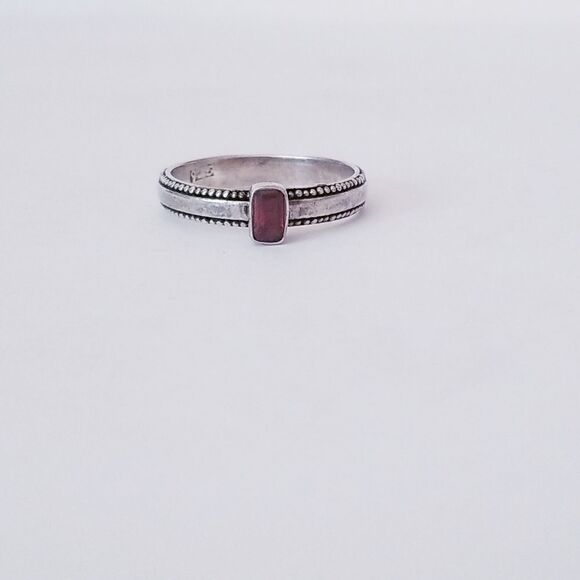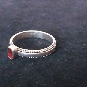 Beautiful antique sterling silver ring with a dainty beautiful garnet stone.