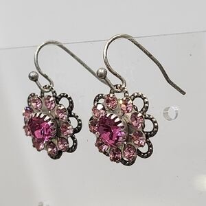 Search Terms: Antique earrings, floral earrings, rhinestone earrings, pink earrings, vintage jewelry, feminine accessories, drop earrings, romantic jewelry, delicate earrings, gradation color earrings, intricate design, nostalgic jewelry, chic fashion, elegant accessory, timeless design, classic earrings, costume jewelry.