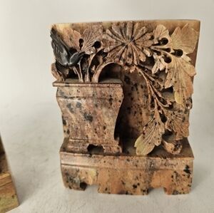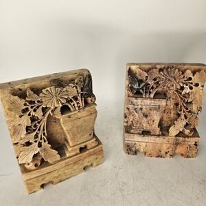 This is a listing for these beautiful hand carved soapstone bookends. The carving is intricate and equisite, and they are in pristine condition. They measure approximately 6" x 5". These lovely bookends would make a nice gift for anyone.