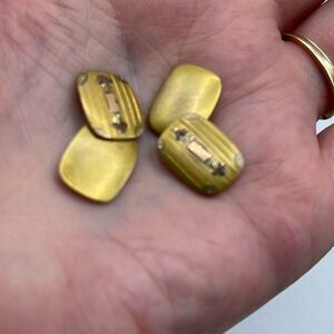 Antique-vintage Edwardian For and Perry double button cufflinks gold link. They show wear especially on backsides of cuffs. They are Hallmarked F.P.Co. These ave an elegant etched with inlay design.