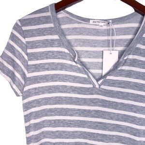 Antistar NWT Striped Jersey Knit T Shirt Dress Size Medium in Gray and White