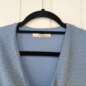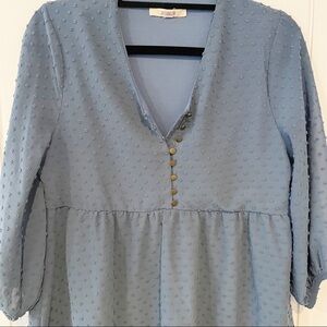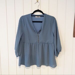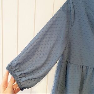 Antoinette Blue Swiss Dot Sheer Sleeve Blouse
